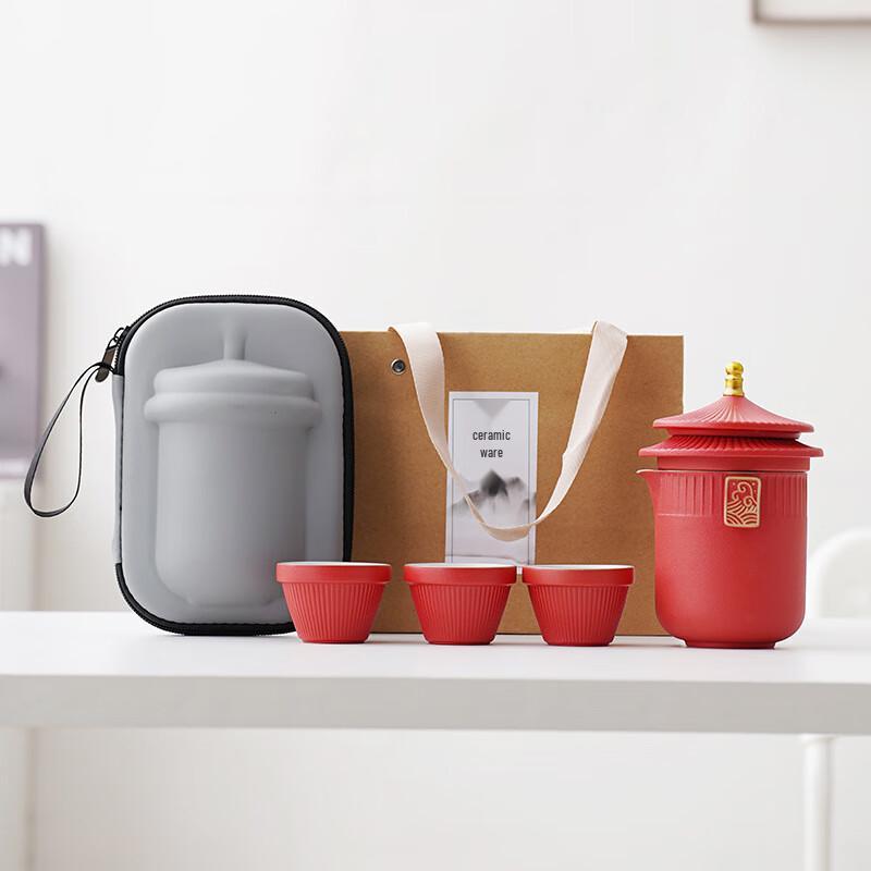 SHIJIANA Palace Style Ceramic Travel Tea Set - One Pot, Three Cups