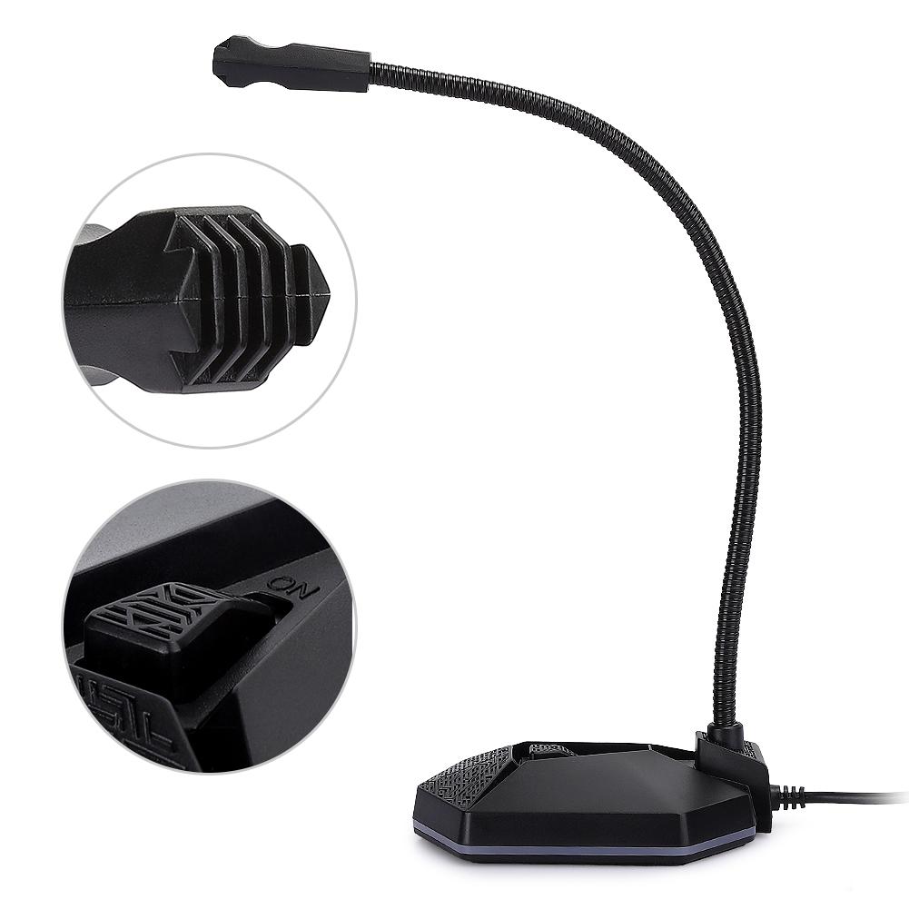 Computer Microphone RGB USB Bendable 360 Degree Omnidirectionnel Drive Free PC Desktop Mike