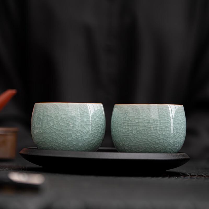 Ru Kiln Ice Crackle Glaze Ceramic Gongfu Tea Cups - 2-Piece Gift Set