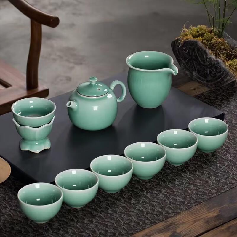 Yi Hu De Elegant Celadon Green Ten-Piece Tea Set