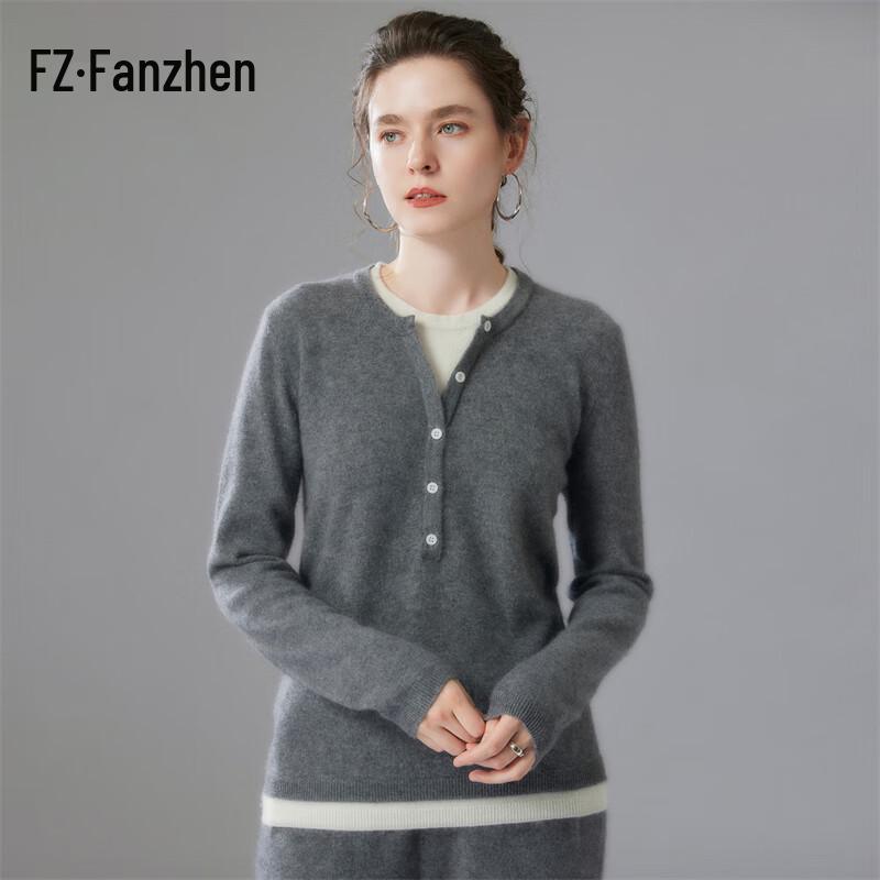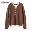 Fanzhen Women's Faux Two-Piece Cashmere Blend Sweater