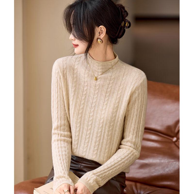 Srcr Women's 100% Cashmere Semi-High Collar Cable Knit Sweater