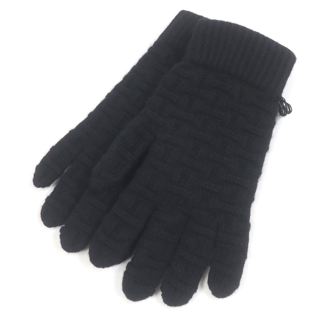 Pristine HERMES Gloves H Logo Motif All-over Knit Gloves Black Cashmere Mens L Used