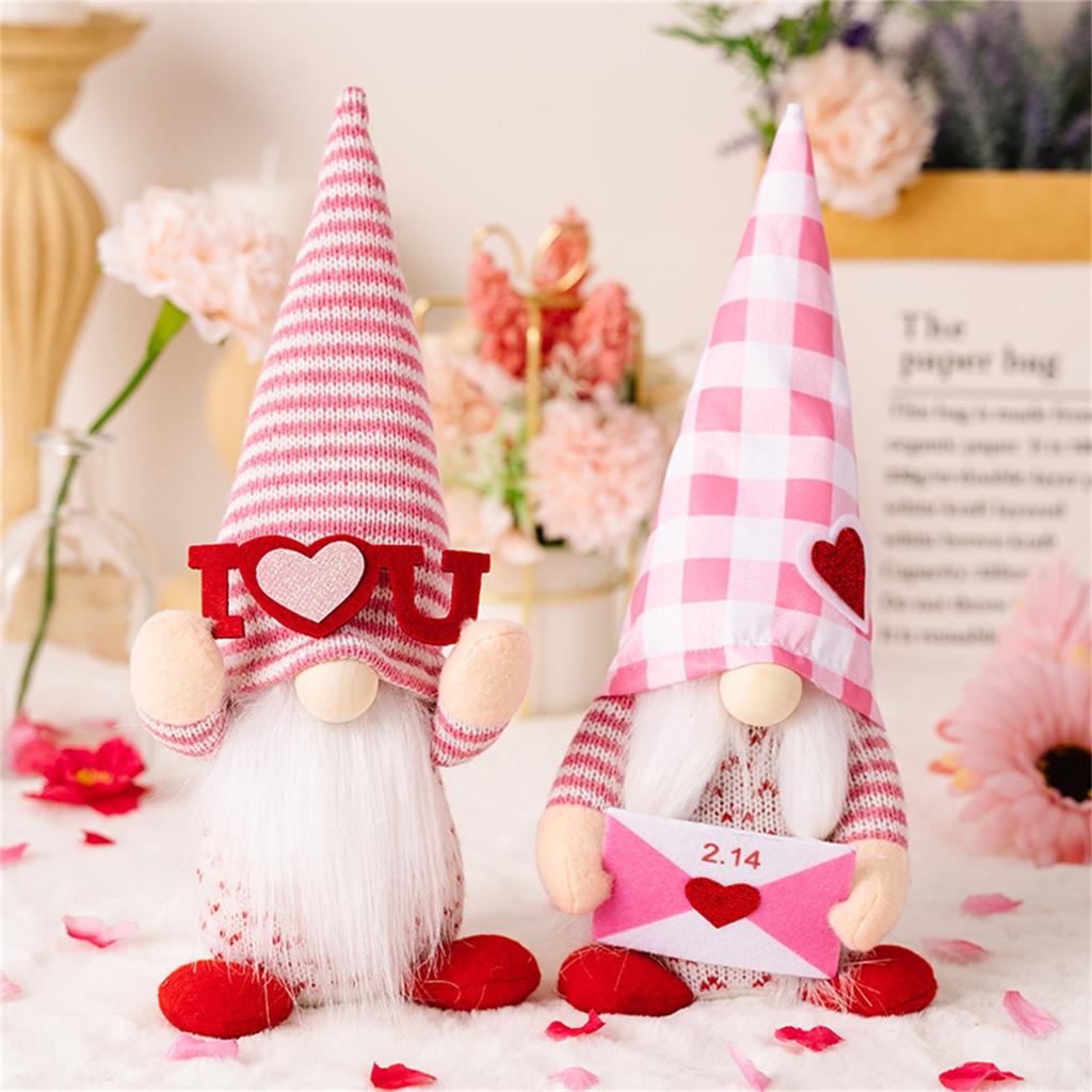 Valentine's Day Striped Hat Faceless Doll, Home Decoration Gift Holding Love Heart Knitted Doll