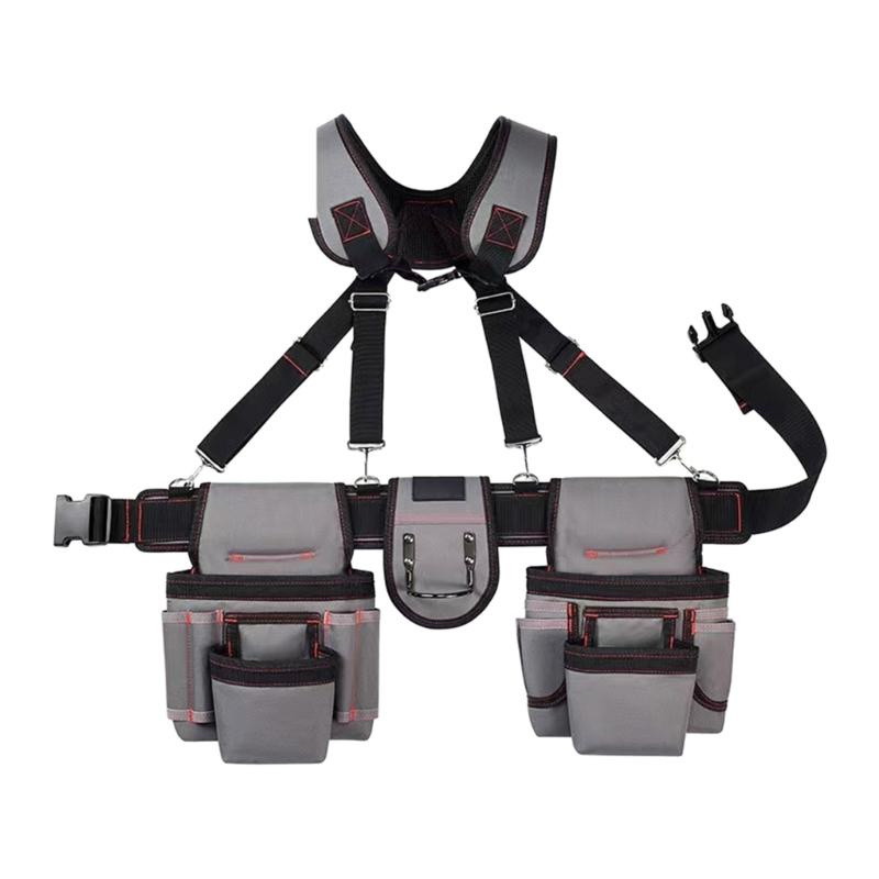 Adjustable Tool Belt for Men with Suspenders and Multi Pockets Ideal for Carpenters Construction Workers and Gardeners