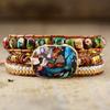 Bohemian-style Beveled Turquoise Bracelet, Three-layered Wrapped Hand-woven Leather Cord Bracelet