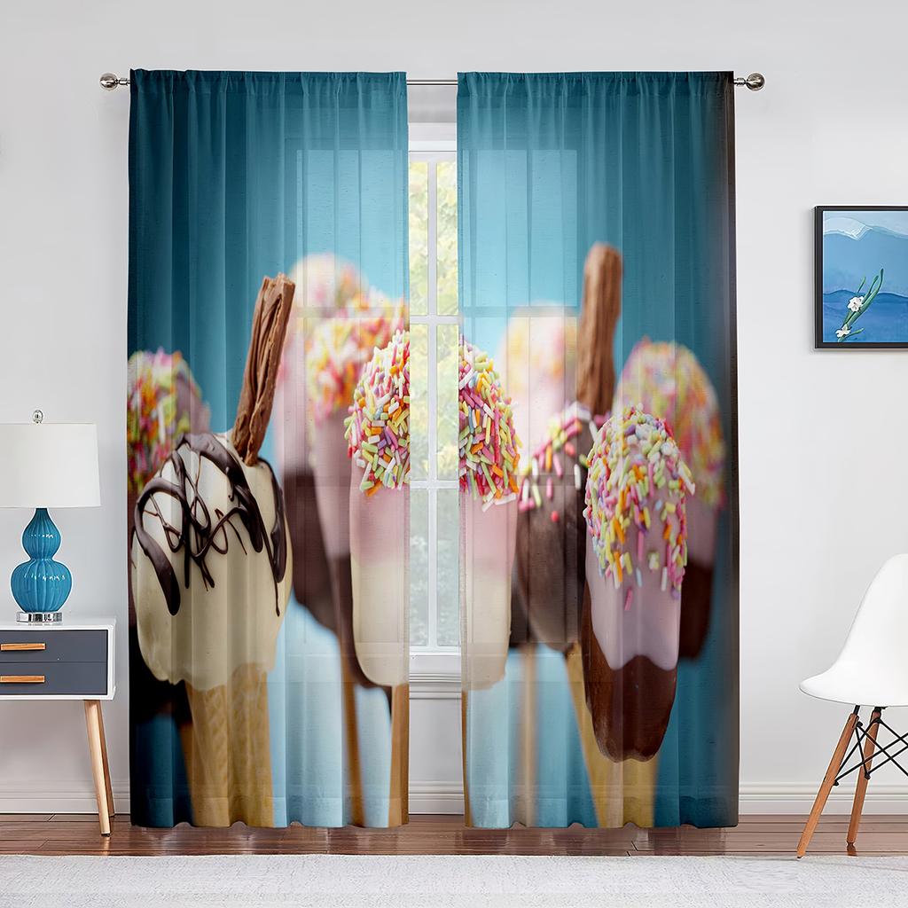 Ice Cream Sheer Voile Curtain Taste of Summer Theme Chocolate Candy Window Tulle Curtains for Living Room Bedroom Decorations