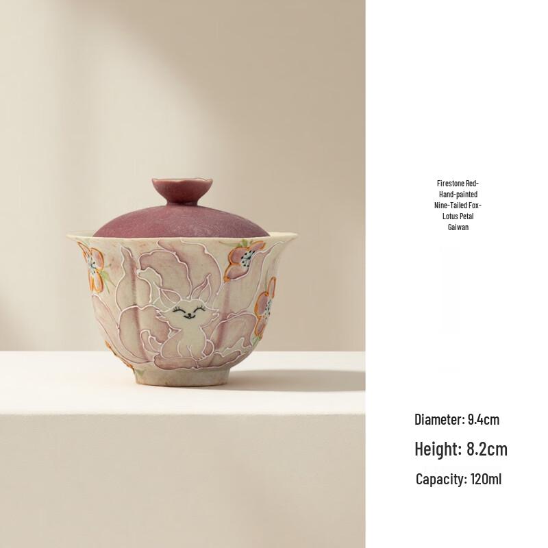 ModelFlint Red - Hand-painted Nine-tailed Fox - Lotus Petal Gaiwan
