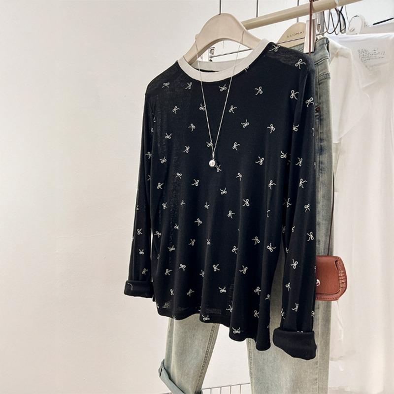 Women's Simple Fashion Casual Style Printed Long-sleeved Bottoming Shirt Thin Versatile T-shirt