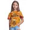 Girls' Clothing Thanksgiving Turkey 3D Printed Short Sleeved T-shirt Casual Holiday Cartoon Boy T-shirt Summer Children's Top
