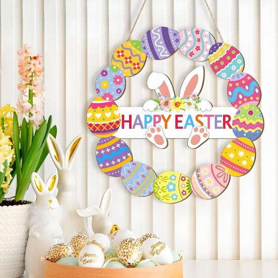Unique Seasonal Ambiance: The combination of the cheerful rabbit motif and colorful hanging eggs brings a vibrant yet natural spring atmosphere indoors. This decoration enhances any setting with warmth and liveliness, making it ideal for celebrating Easter traditions while complementing various home styles.