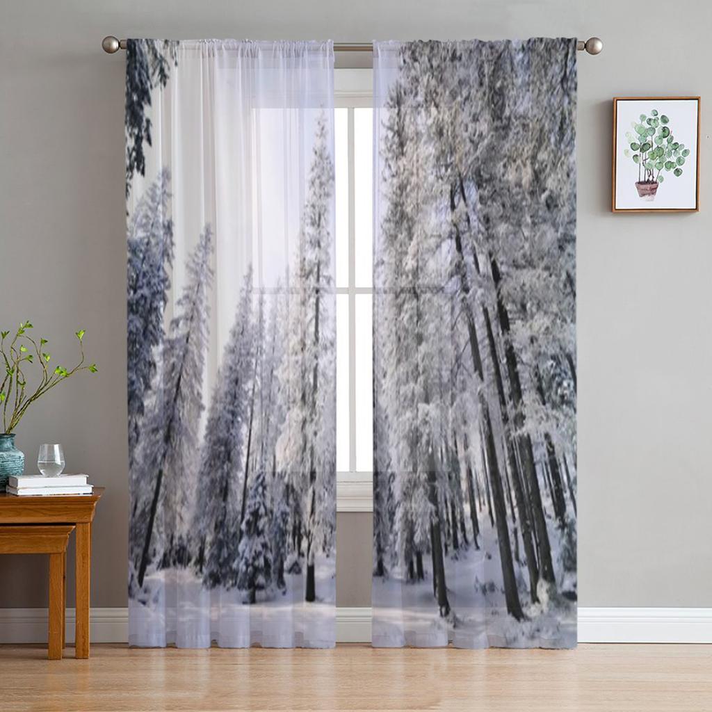 Winter Forest Tatra Mountains Poland Sheer Curtains for Living Room Transparent Tulle Window Curtain Bedroom Kitchen Veil Drapes