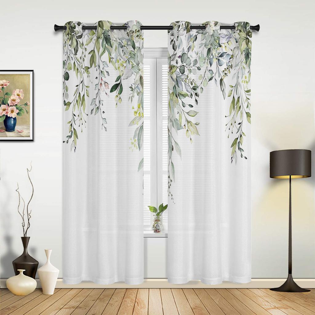 Watercolor Green Leaves Curtains for Bedroom Living Room Window Curtain Treatments Blinds Kitchen Home Decor Drapes