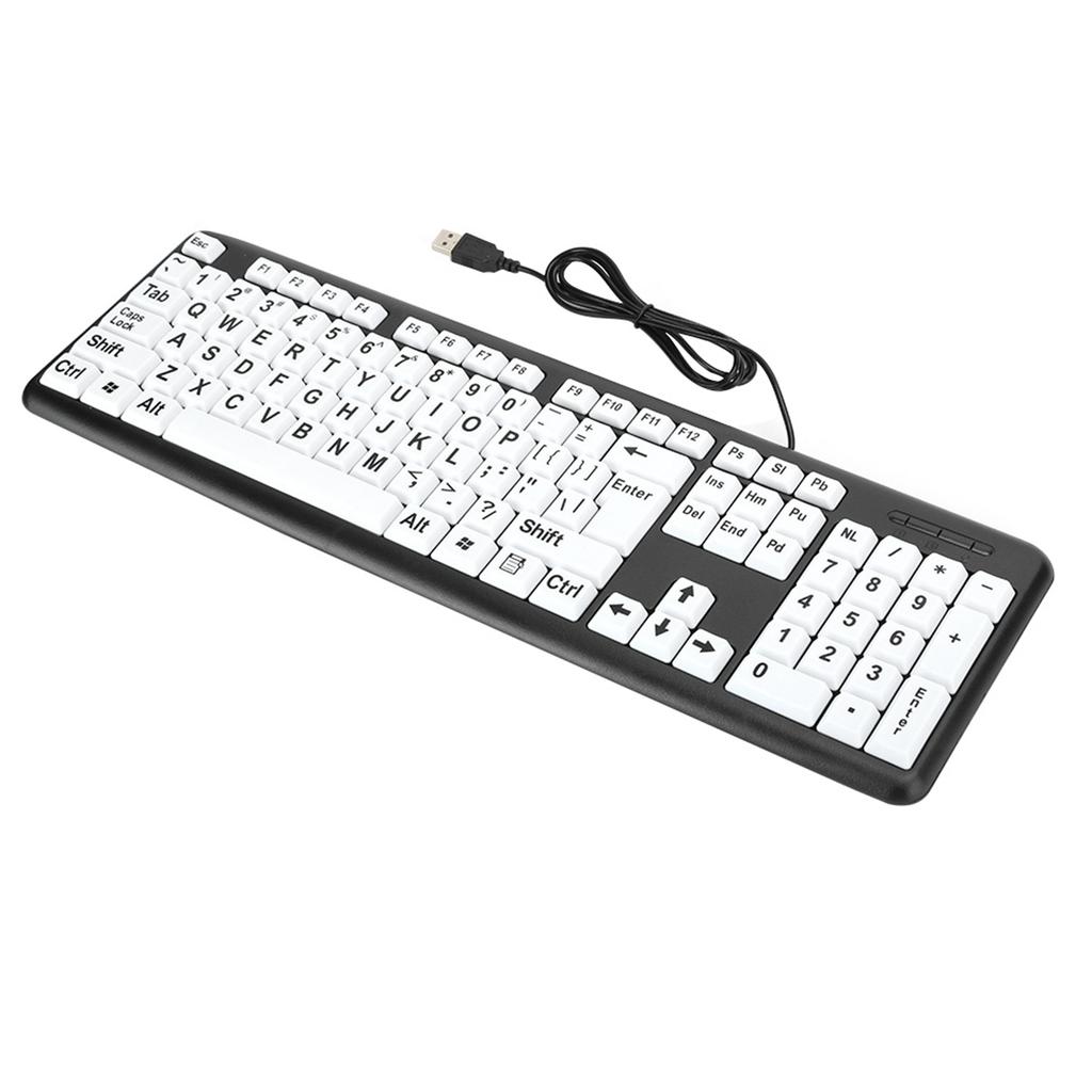 Black Low Vision Keyboard USB Wired Old People Keyboard with White Large Print Keys Old People Keyboard Large Print Keyboard