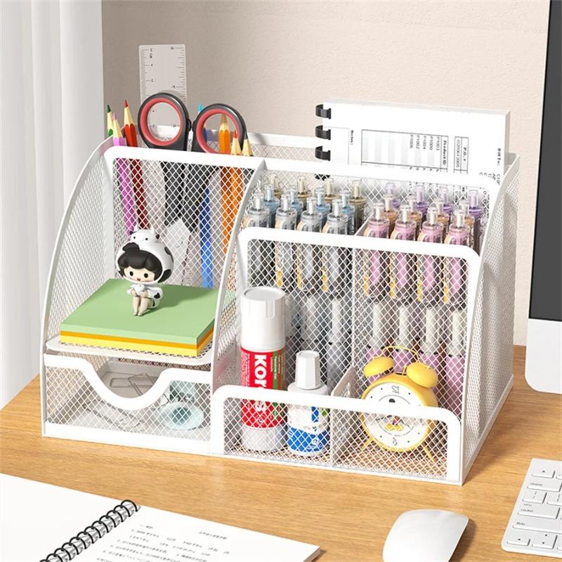 Desk Stationery Organizer Creative Metal Pen Holder Pencil File Storage Rack Storage Box Divided Container Office Accessories