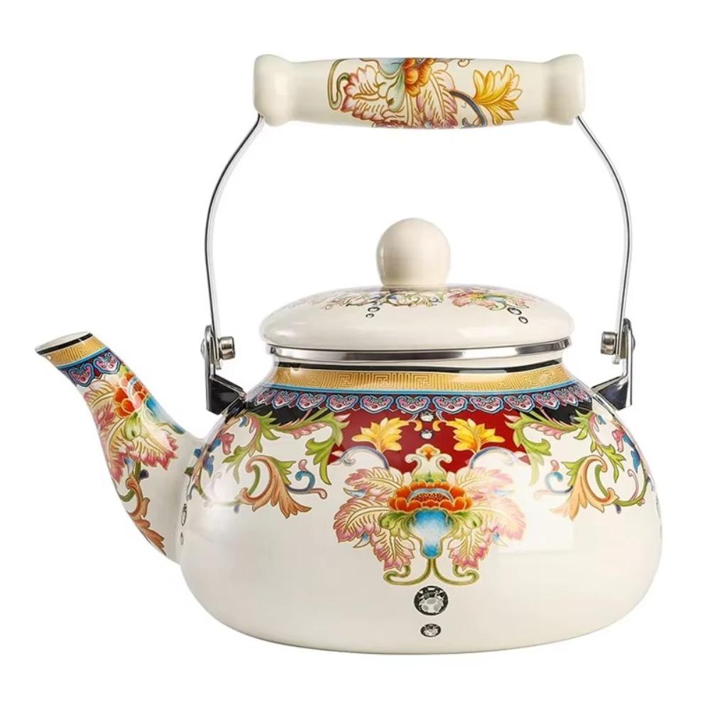 Floral Enameled Gas Water Kettle Chinese Style Tea Jug Thickened Coffee Pot Gas Induction Cooker