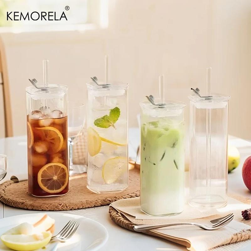 1/2PCS Modern Square Tumbler Glasses Clear Highball & Old Fashioned Cocktail Glasses with Straws for Iced Coffee Juice Beer Milk