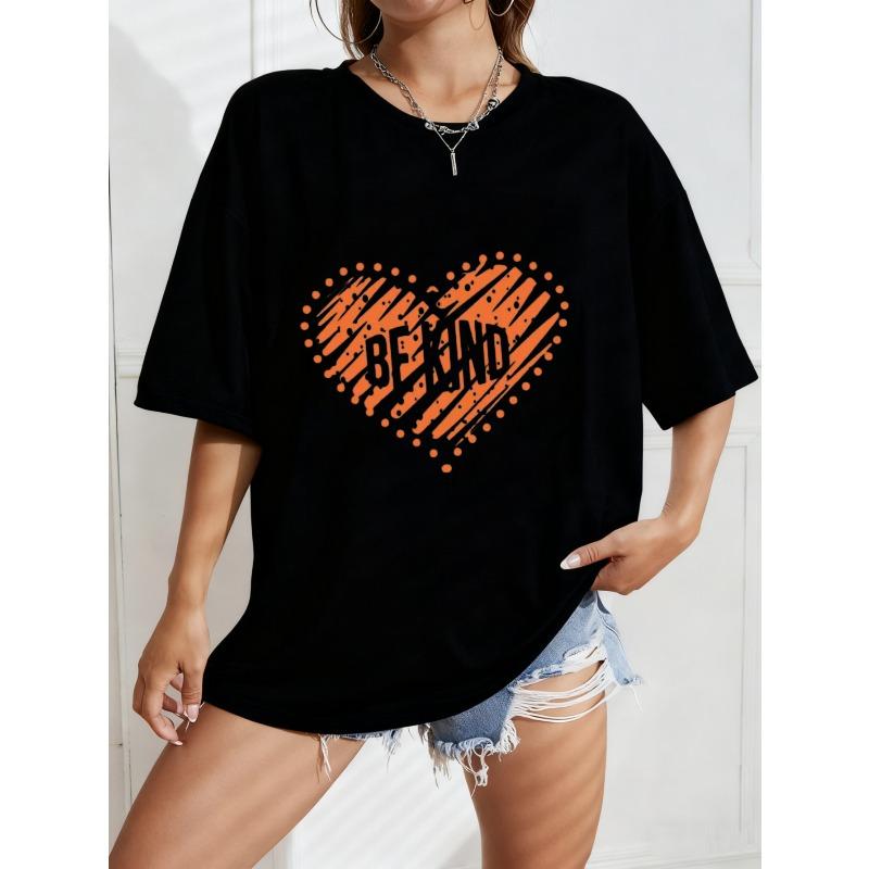Oversized T Shirt White Be Kind Heart Print Graphic Tee For Casual Wear And Everyday Style