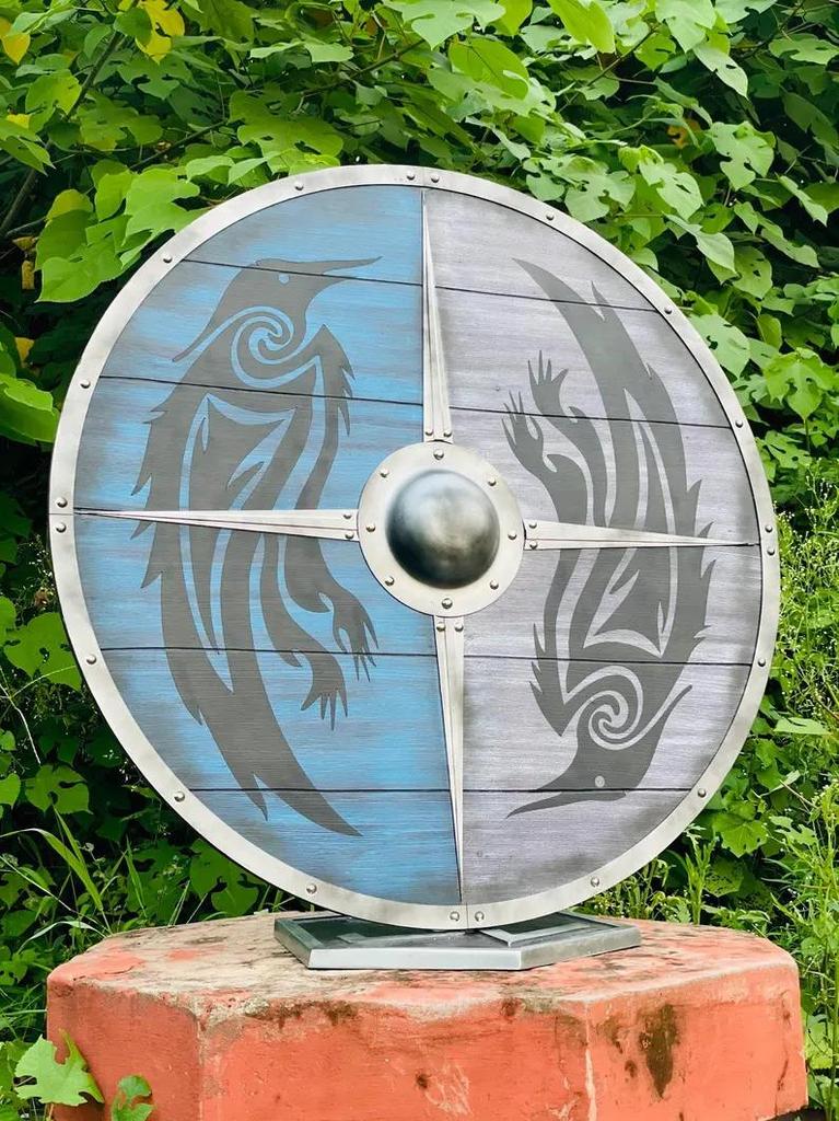 Viking Raven Wooden Shield: Valhalla Norse Warrior Decor