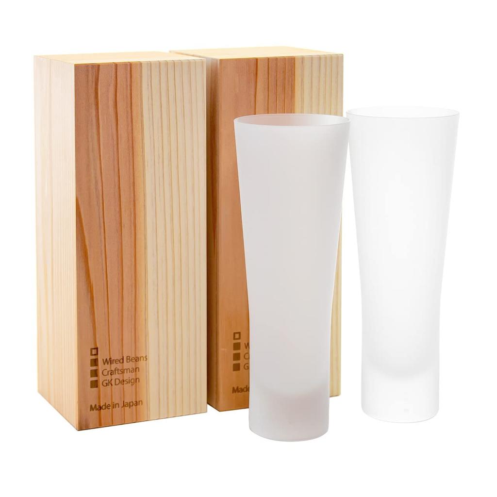 Wired Beans Eternal Beer Glasses, Set of 2, 430ml Frosted Beer Glasses, In a Cedar Box