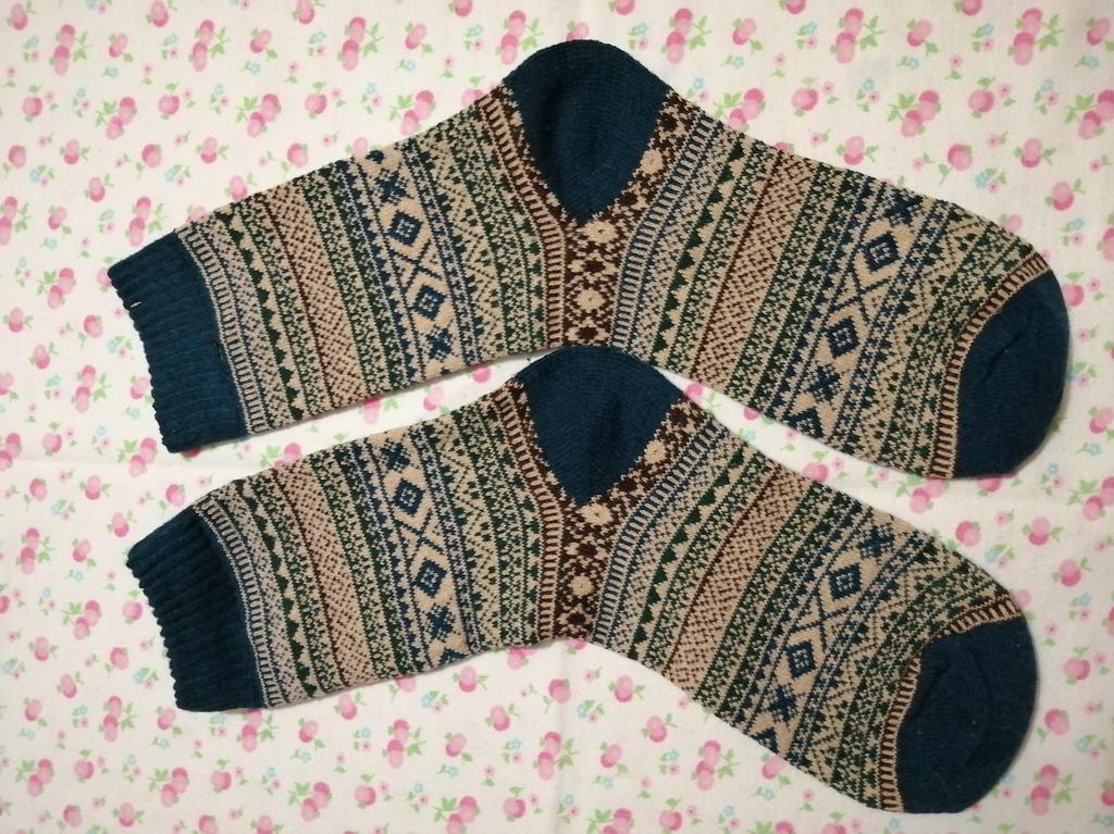 Men's Autumn/Winter Thick Warm Wool Mid-Calf Socks - Japanese Retro Ethnic Style, Small Diamond Pattern