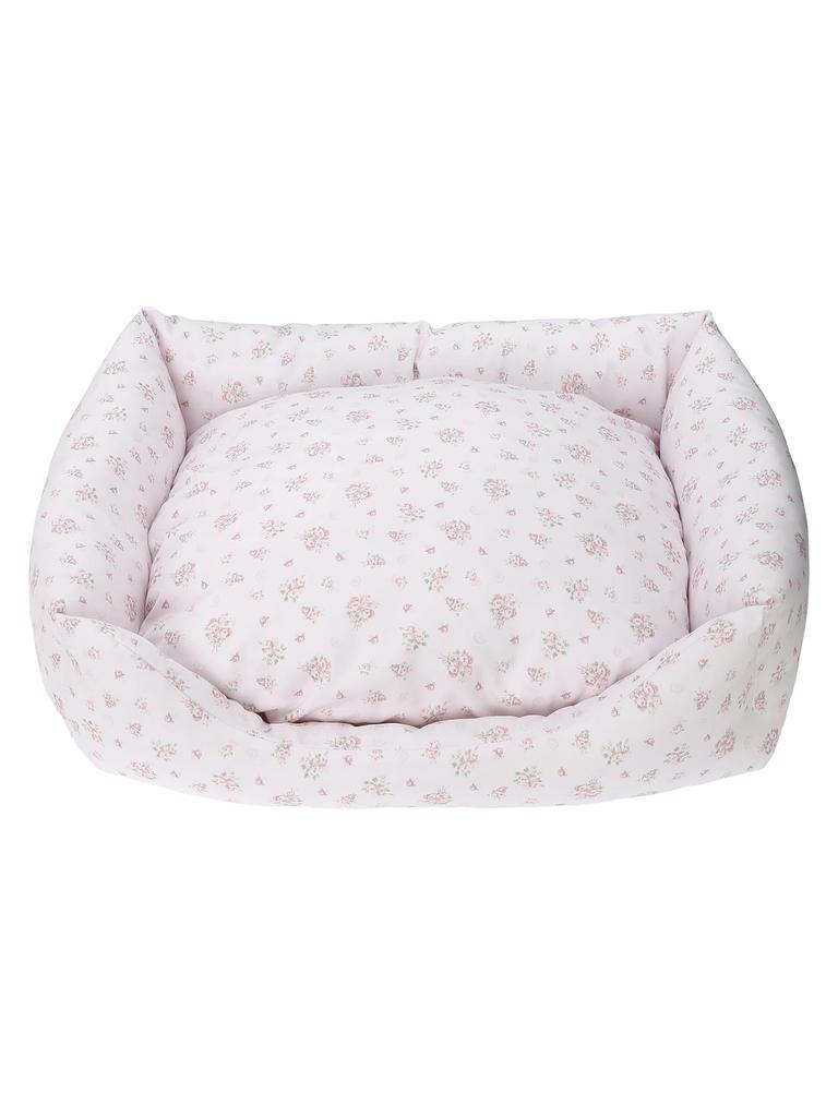 Maison De FLEUR Original Flower Print Pet Bed, Medium, Pink, with Pet Cushion, 8A41YZM0600