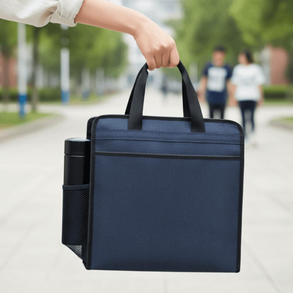2.DOCUMENT ORGANIZER BAG: This file organizer bag with handle has two compartments which make your items well organized. Main pocket can hold laptop, books, documents, papers, notebooks and other stationary. Outside compartments with zipper suitable for bills, receipt, personal wallet, business card during meeting or business trip. Two pockets beside for umbrella, cup, sunglasses etc.