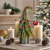 12 Inch Curved Christmas Tree with Red Balls, Mini Artificial Xmas Tree for Tabletop Holiday Decor