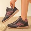 The shoe upper is made of anti fouling synthetic leather and fabric, with a waterproof surface that can resist rain and snow invasion. The fabric part enhances air circulation to avoid discomfort and stuffiness. The shoe design is loose and moderate, ensuring warmth without appearing bulky. The high top design wraps around the ankle, reducing the infiltration of cold air, and the hidden reinforcement structure of the heel enhances walking stability.