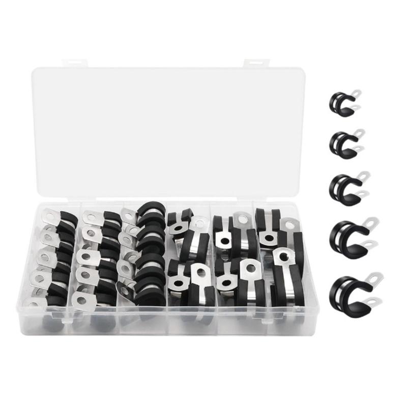 Upgrades Steel Rubber Cushioned Cable Clamps 25pcs Assorted Size Pipe Clip Multipurpose Wire Clamps for Secure Wiring