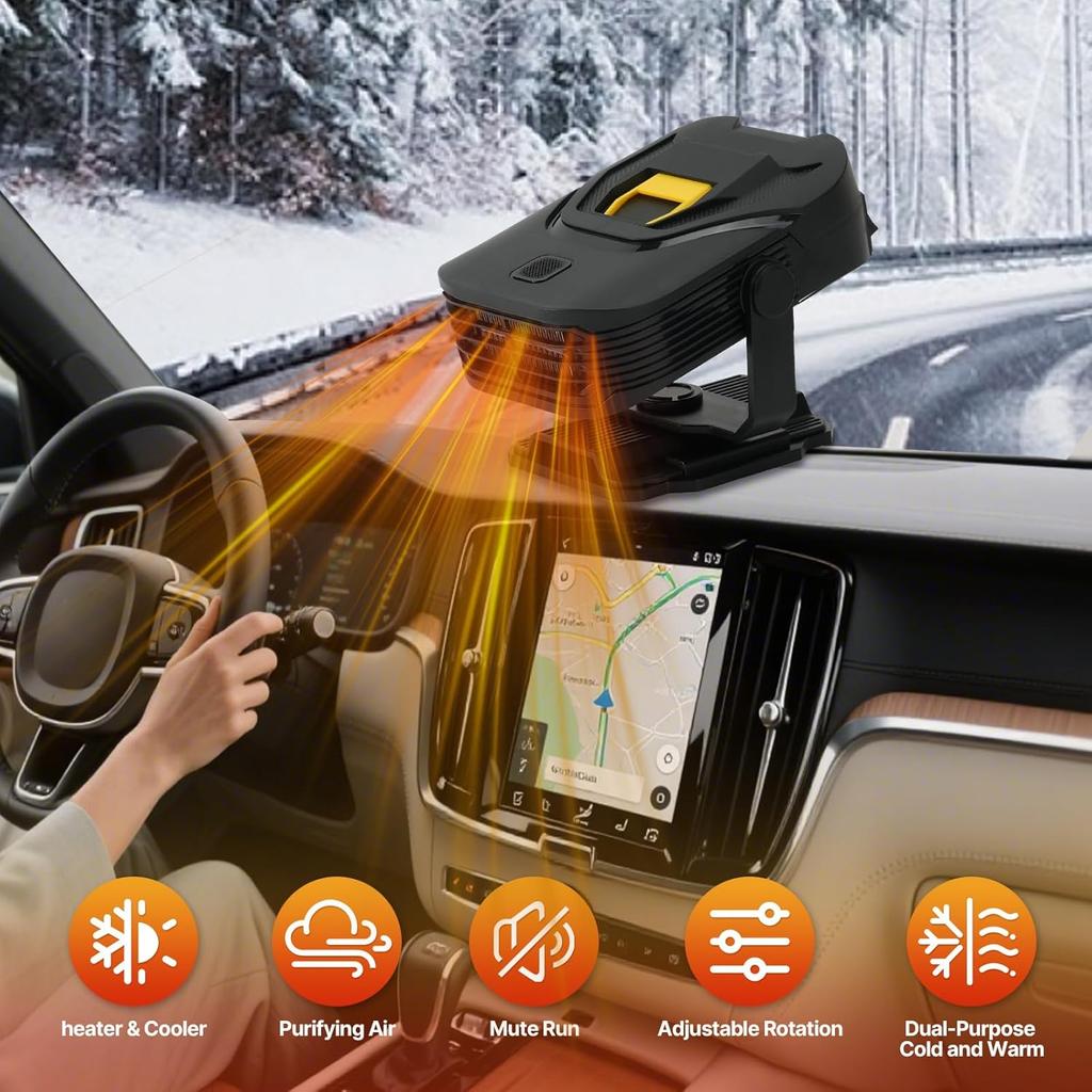 12V Portable Car Heater & Windshield Defroster, 2-in-1 Fast Heating/Cooling Fan with 360° Swivel Base for SUVs, Trucks & RVs