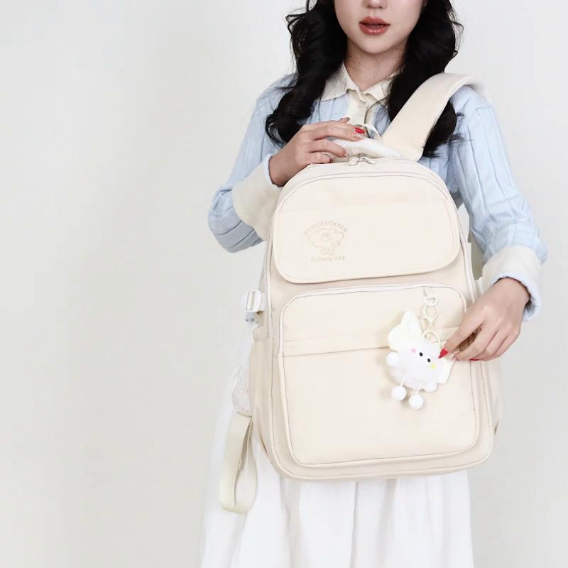 Large Capacity Student Schoolbag Women's Solid Color Backpack Multi-Compartment Wear-Resistant Backpack