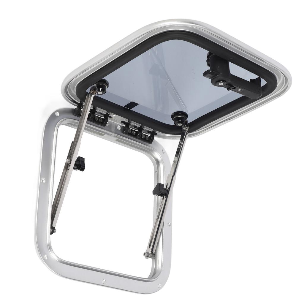 Marine Hatch Porthole Window 15 X 15in Square Aluminum Alloy Deck Hatch Window with Support Rod and Handle for Yacht RV