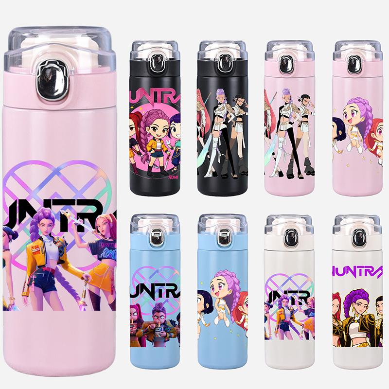 Anime K-Pop Demon Hunters Printed 400Ml Water Bottle Thermos Cup Portable Stainless Steel Leak Proof Camping Water Cup Kid Gift