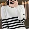 Round Neck Contrasting Striped Sweater for Women In Autumn Simple Knitted Sweater