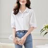 Khaki Shirt for Women In Five-quarter Sleeve Summer New Design Niche Fat Mm Loose Cotton Top