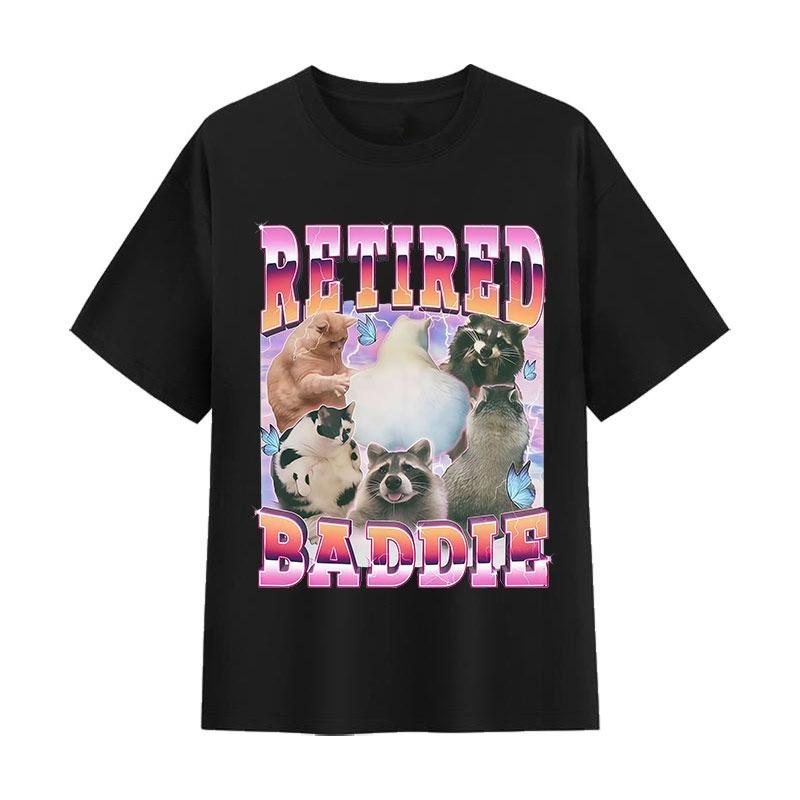 Retired Baddie Cat Raccoon Lover Funny Graphic T-shirt Men Women Cute Style Oversized T-shirt Casual O-Neck Short Sleeve T Shirt