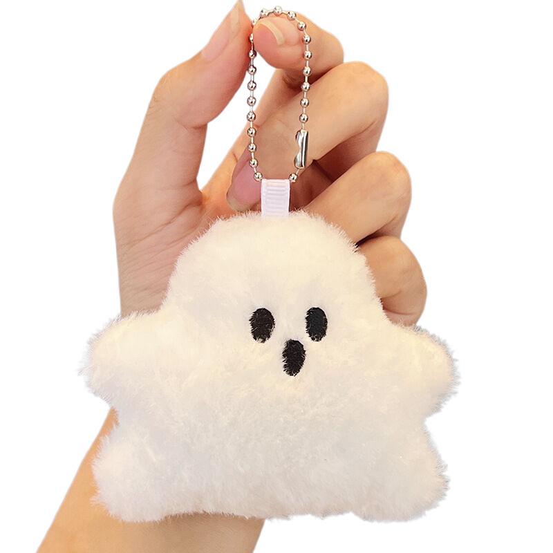 Funny White Ghost Keychain Cartoon Cute Plush Doll Pendant Keyring Bag Hanging Accessories For Children Kawaii Gift