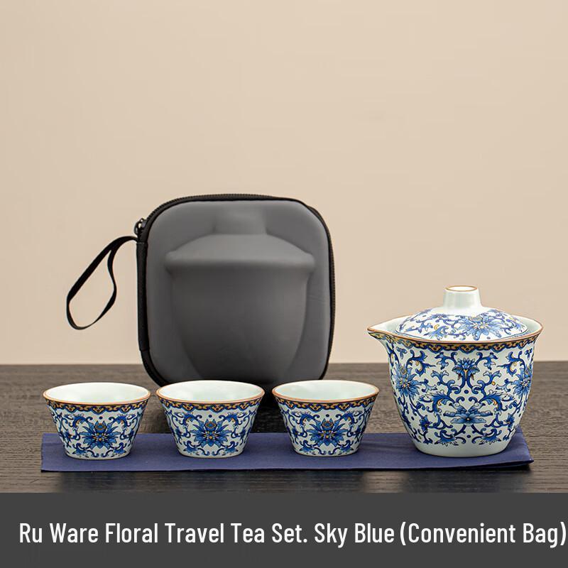 ZISIZ Celadon Lotus Portable Travel Tea Set