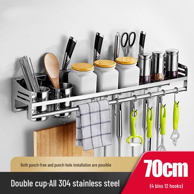 ZISIZ 304 Stainless Steel Kitchen Wall-Mounted Spice Rack with Knife Holder and Chopstick Caddy