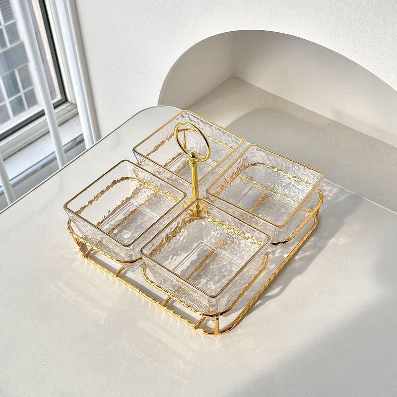 ZISIZ Acrylic Divided Snack and Fruit Plate with Gold Handle
