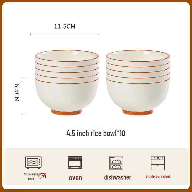 ZISIZ Cream Style Ceramic Rice Bowls Set