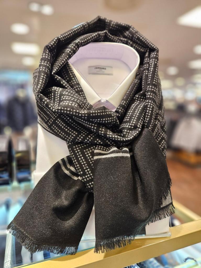 Renoma Soft and Warm Herringbone Point Muffler FNFTM5102-BK-RD-GY