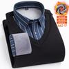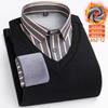 Fleece Fake Two-piece Men's Shirt Collar Middle-aged Elderly Casual Loose Bottoming Thickened Pullover Sweater