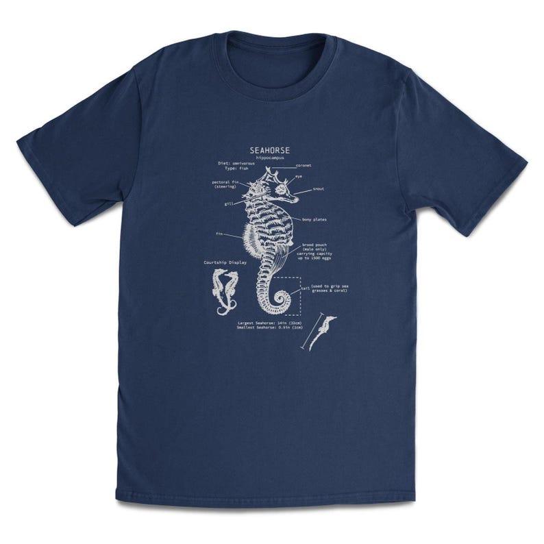 Seahorse Anatomy Map Seahorse T-shirt Gift Marine Biologist Retro Seahorse Print Personality Minimalist Street Art Aesthetic Top