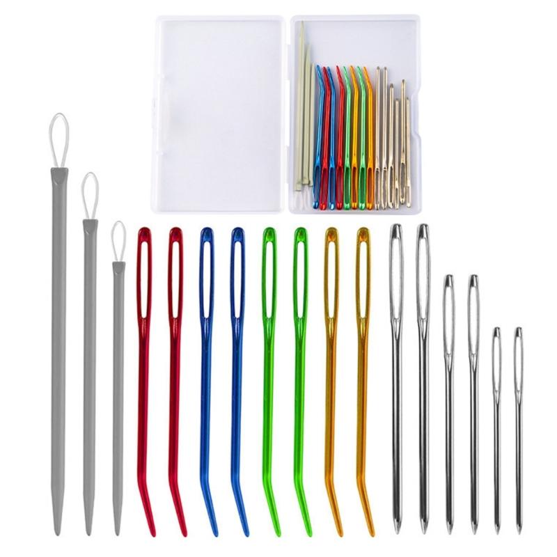 Package contains: 8Pieces Bent Tip Tapestry Needle; 6Pieces Large Eye Sewing Knitting Needle; 3Pieces Wool Needle; 1Piece Storage Case.