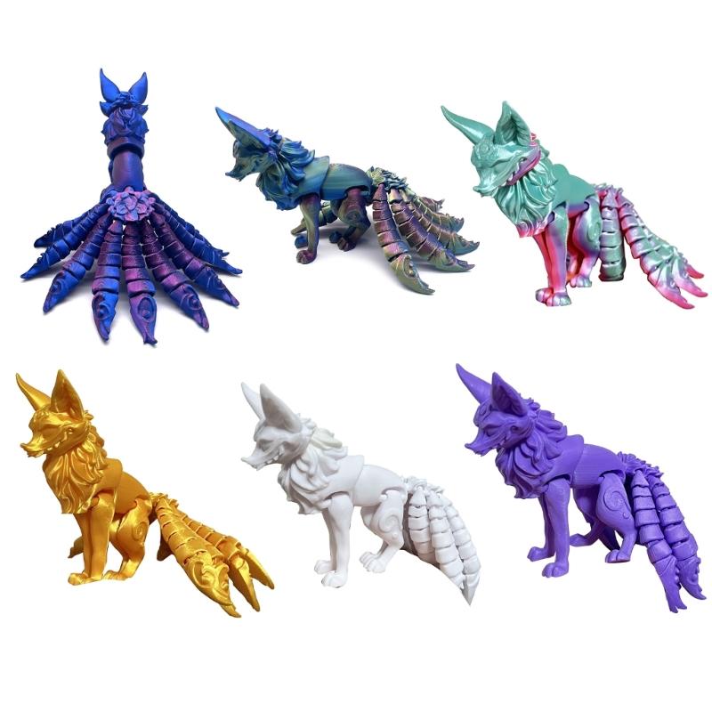 Articulated Nine Tailed Foxes Model, 3D Printed Multi Joint Collectible Figurine, Home Decoration Craft