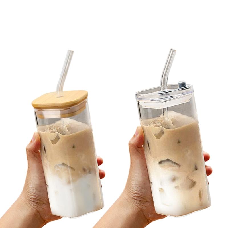 Heat Resistant Glass Cup with Straw 350ML Cold Drinks Cup Juice Cup Milk Cup with Lid Glass Texture Suitable for Drinks