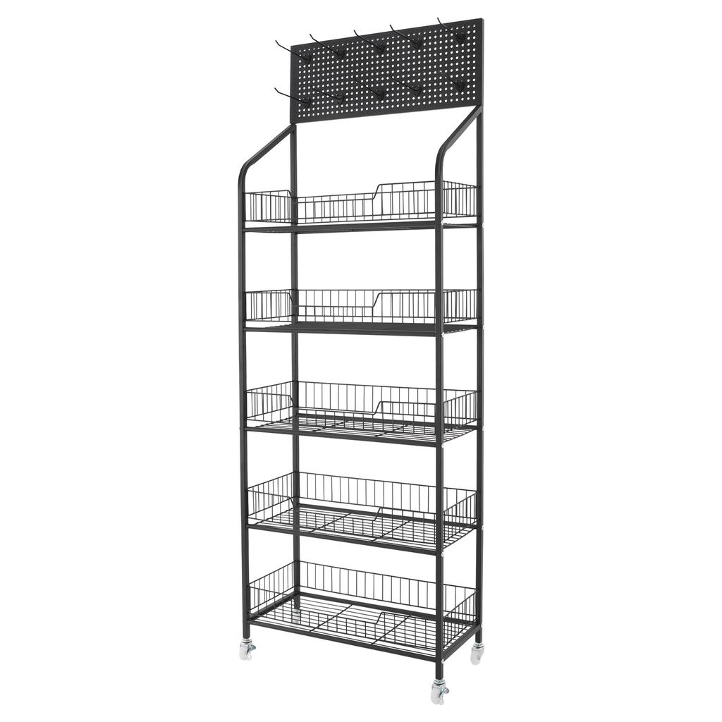 5 Tier Retail Display Rack Stand Snack Candy Display Organizer with 10 Hooks Snack Rack Basket Stand Cart Metal Wire Basket Cart