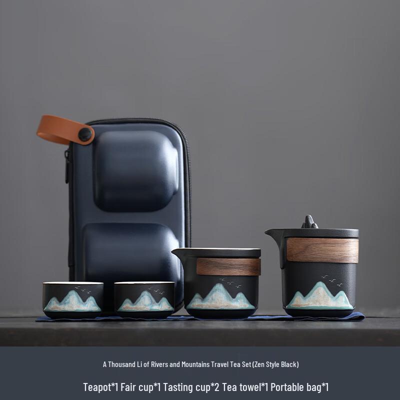 Zhuijia Zen Black Coarse Pottery Travel Tea Set